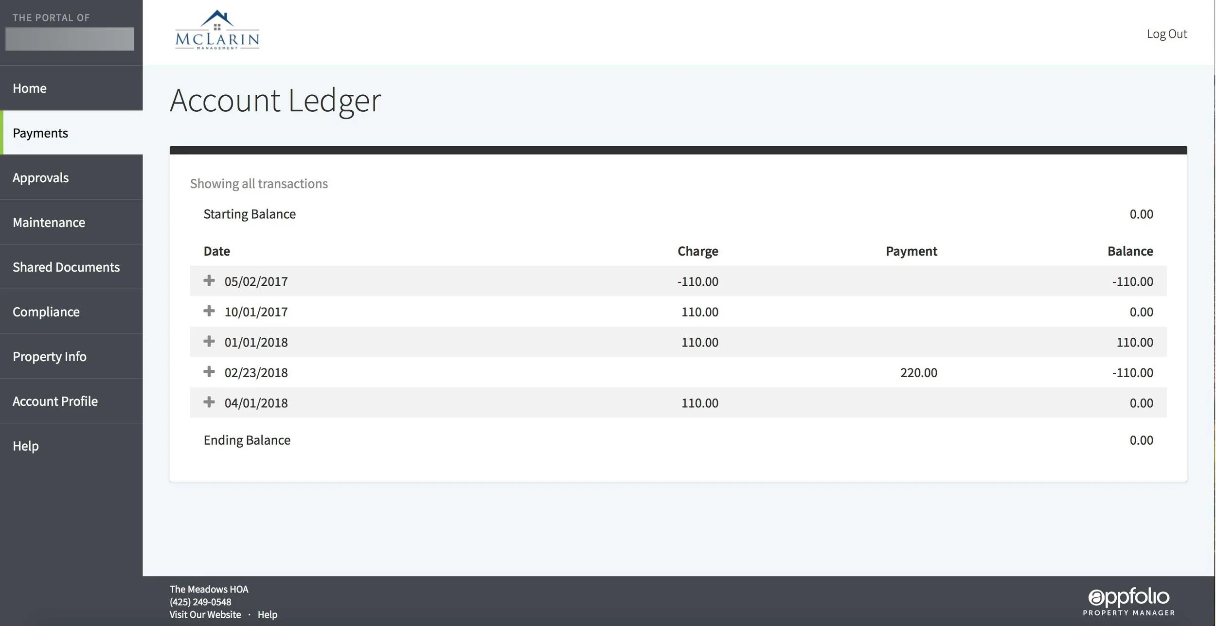 To stay in touch with the community events and notifications, sign up for the community portal. The portal contains important documents, forms, meeting minutes and copies of newsletters, etc. You can also use the portal to setup online payments for HOA dues.